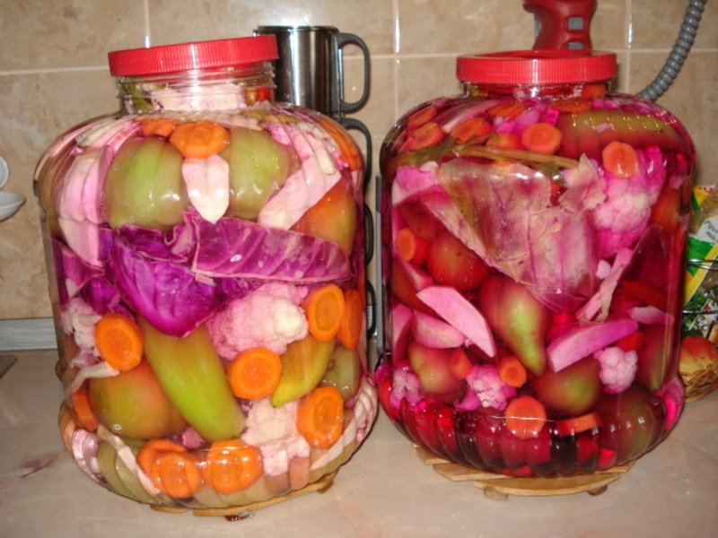Povrće treba da napuni najviše 2/3 konzerve. Dodajte 1 kašiku krupne soli, šolja surutke i deo vode dok se tegla ne napuni. Na to stavite mali tanjir ili drugu presu tako da je sve povrće potopljeno u tečnost. Ostavite da fermentira 1-2 nedelje na sobnoj temperaturi, a zatim povrće prebacite u frižider.